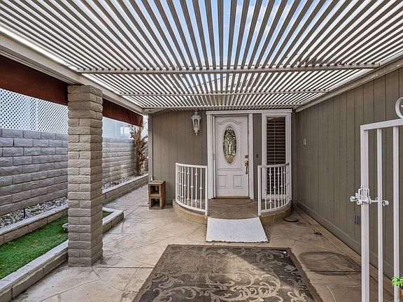 This impressively large home with great floor plan, is conveniently located within The Colony. Primely located near the community entrance, club house, pool, and other amenities, offering easy accessibility other homes can't. Featured living spaces include a huge, bright living room with wet bar and vaulted ceilings, a generous guest room with built in bookshelves that can be used as an office or separate sitting area. The dining area and living room flow cohesively off the kitchen, while the laundry room offers a full-size washer and dryer. The sizable primary suite has plenty of closet space and separate shower and tub ensuite bathroom. A spacious front patio and an additional patio in the back. The covered carport is long enough for three cars in tandem. Other features include updated copper plumbing throughout, updated electrical throughout, and a low maintenance yard.