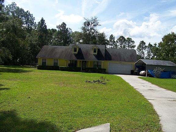 Three bedrooms and two bath home on a beautiful 3.12 acre lot. Country living just off US Hwy 17 a convenient location. Property is fenced on three sides. Home features a large kitchen, dining room, and living room. The garage was converted for additional living space and storage area. Property has a large workshop and multiple storage sheds. Zoned for horses. Home is a must see!