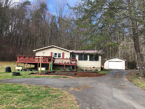 Two for One! Stick-built tin-roofed ranch home in Cherry Log in a small valley off Boardtown Rd, approx. 1200 sf, built 1980, fully updated in 2018. Sits on nearly 3 acres, mostly sunny & grass-covered, fairly level lot on a small creek. Farmhouse style home has hardwoods throughout most, a large kitchen with island and separate entrance from the wrap around deck, laundry/mudroom, sunroom, and walk-in closet in the master BR. View is of pastures and mountains. A nearby waterfall can be heard from the deck. Garage is separate. A second and larger cinderblock building on the property (used to be a metal shop) could easily be converted into an apartment or a business enterprise. The property is on a dead-end street, has wonderful spring water, and has a large 50K KW generator that serves both buildings. An excellent garden spot: it is unrestricted and has fruit trees, blueberries, figs, flowering trees & shrubs, (Rose of Sharon, gardenias, a tulip tree). It’s < 2 minutes from a paved main road, about 13 mins to downtown Blue Ridge and 15 mins to Ellijay. A great lot for kids, or for someone who likes sunshine and green grass or wants a garden and maybe an orchard. Could also choose to build a 2nd larger house on property and then tear down original home, or subdivide the lot and sell off half. Lots of possibilities!