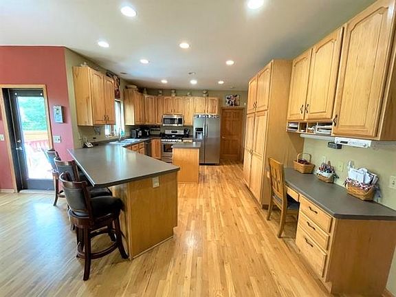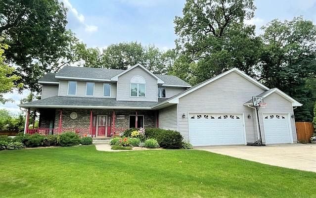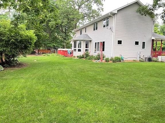 Large 2-story home with 5 bedrooms and 3.5 baths nestled on nearly a half-acre, cul-de-sac location. Fenced in backyard with private deck, fire pit area, and plenty of room for entertaining. Conveniently, the home backs up to grade school, allowing easy access for your children to come and go from school. Open floor plan with an upscale kitchen featuring a center island, eating bar top area, and extra cabinets with desk. First floor master bedroom with private bath and walkin closet. One of the bedrooms is large enough to be used as a separate kids play and/or family room. Fully finished basement with a nice size bar, pool table area, family room, full bath, office and plenty of extra storage. A great home to make your memories in and never grow out of.