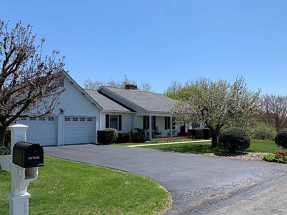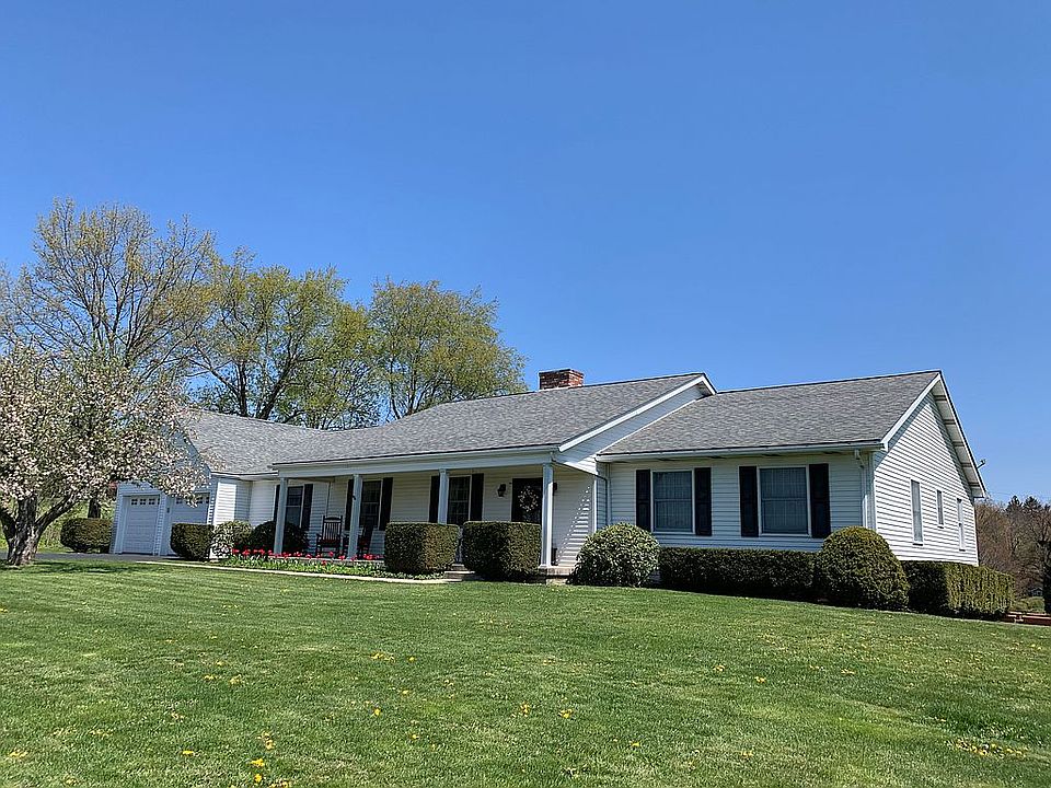 Come tour this beautiful move-in ready 3-bedroom, 2-bath vinyl sided ranch home with 2 1/2-car attached garage. This home is set on approximately 3/4 acre in a nice, quiet neighborhood close to town. With its open floorplan, this home is great for entertaining! The ceramic tiled entryway flows smoothly into the family room, living/dining room, and kitchen. The beautiful custom kitchen boasts carefree quartz countertops, ample cabinet space, and many amenities such as slide out drawers and built-in silverware, spice, and tray organizers. The kitchen flooring is ceramic tile that coordinates with the entryway. The kitchen also has a 2-seat breakfast bar that is perfect for quick snacks and casual meals. The living/dining room has beautiful ¾-inch hand-scraped hickory hardwood flooring and two built-in cabinets that match the kitchen cabinetry. The family room also has hardwood flooring and a wood-burning fireplace to keep you cozy & warm on winter nights. Another awesome feature in this home is the mudroom. When entering from the garage, this functional space provides a place to store everyone’s shoes, coats, hats, backpacks, etc. The 1st-floor laundry room has ceramic tile flooring, utility sink, and a utility closet. The 14 x 14.5 carpeted master bedroom also has an 8x10 custom walk-in California Closet. Bedroom Two, currently used as an office, is 15 x 14.5 and has hardwood flooring. Bedroom Three is 11 x 12 with carpeting. The master bath has a walk-in shower, custom cabinetry, counter-height vanity, quartz countertop, and natural stone / tumbled marble tile flooring. Bathroom Two also has a counter-height vanity with quartz countertop and has ceramic tile flooring. The huge unfinished basement is currently used for storage, workout space, and a 20-yard indoor archery range. The possibilities for this space are endless! Other features include a covered front porch positioned perfectly for watching gorgeous sunsets, a covered back patio, and a backyard with great potential for creating an outdoor living space. As an added bonus, there is a hill off the far end of the backyard that is perfect for sledding fun in the wintertime!