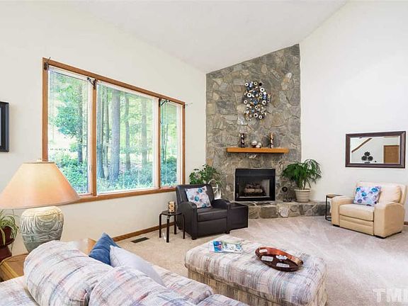 Fabulous contemporary style home filled w/ natural light and deep wooded views! Impeccably maintained + loved by original owner, this unique home offers an open floor-plan; large comfortable kitchen overlooking expansive deck; gorgeous 2 story stone fireplace + 8 skylights! 2 beds + full bath on main level, private master suite upstairs w/ separate sitting room, large bath + walk-thru closet! Add'l bonus on second fl. Lush, low maintenance landscaping. Easy access to trails, Kildaire club, shops!!