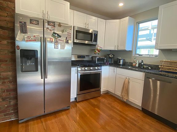 Right on the corner of Kenrick St and Brayton Road in Brighton, this stunning four bed three bath duplex was masterfully renovated. The kitchen features a spacious breakfast bar, exposed brick, stainless steel appliances, a full size gas range, a built in microwave, a dishwasher and in unit laundry. Opening up from the kitchen, is a huge living room which overlooks Gallagher Park, Boston College's Brighton Campus, and the Newton Commonwealth Golf Course. Sunlight pours in during the day! Less than a mile from the Boston College T Stop on the Green Line! Dog Friendly! Central Heat and AC! CALL NOW FOR VIRTUAL TOUR
