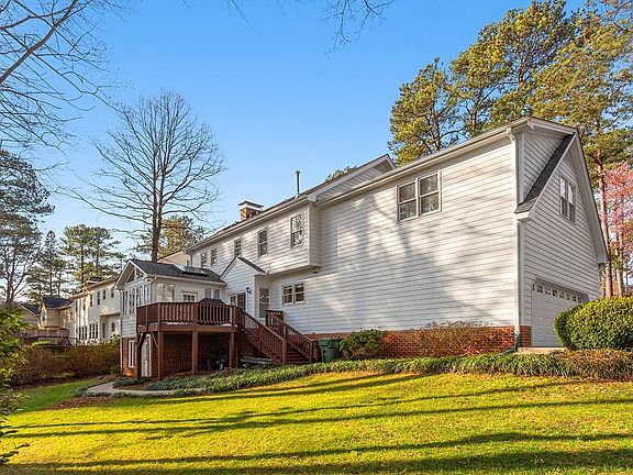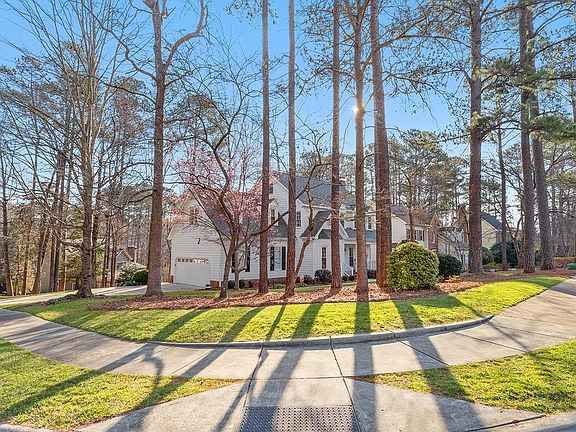 Beautiful, well maintained home on corner lot in desirable pool & tennis community! Hardwoods on 1st & 2nd floors. Large family room flows to gorgeous sunroom w/vaulted ceilings which overlooks beautiful wooded back yard. Updated kitchen w/new refrigerator, range, & microwave (2022). Spacious closets in every bedroom. Fabulous large walk-up attic w/storage for days could be finished. Lower level workshop/office/music room is heated/cooled w/separate exterior entrance. Ventless gas logs in family room. Irrigation system & landscaping lighting. Newer upper HVAC (2021). Wonderful large side-entry 2 car garage. Tankless water heater. Freshly painted throughout. Stroll to Lake Pine, pool & tennis courts, walking trails. Minutes to Costco, Trader Joes, shopping, restaurants, RTP & Airport! Move in ready for the new buyer to call home!