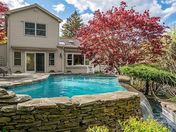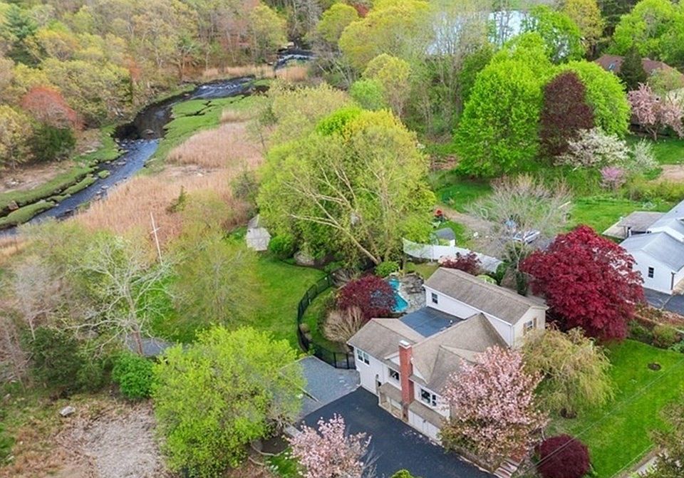 Spectacular private setting tucked along the Weir River Estuary. This light filled home offers an open concept floor plan, allowing for flexible living. Bay windows throughout take advantage of sweeping views of the marsh & private yard with in ground pool. Spacious kitchen allows for more than one cook in the kitchen at a time! Stainless appliances, 5 burner gas stove, dual sinks with breakfast bar. Large living room and dining room, both with custom built in's, flank the kitchen. Family room & dining room overlook back yard with access to the rear deck with awnings. First floor master suite with walk in closet and sunroom, leading to separate deck. Two bedrooms and full bath complete 2nd floor. Hardwood floors throughout. Finished LL walk out is great for multigenerational living with additional kitchen, bath, & wine cellar! The infinity pool w/beautiful waterfall features surrounded by stonework is the perfect place to cool off and relax all Summer long. Outdoor shower.Town Sewer