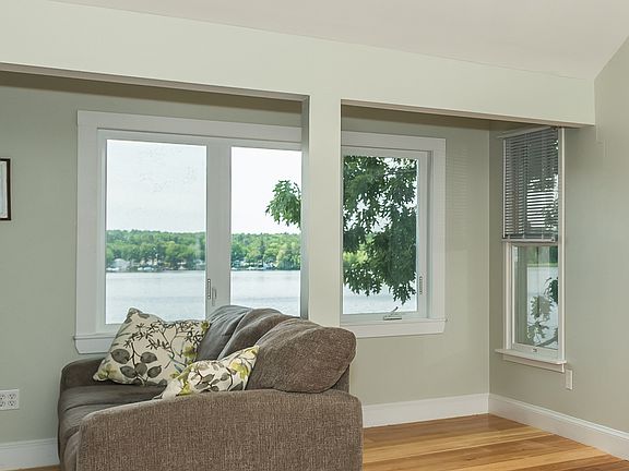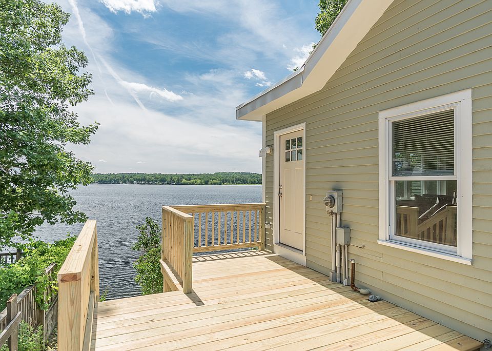 WATERFRONT on Lake Attitash!! Stunning condo alternative with private DOCK! Complete renovation in 2018 - gorgeous cathedral ceiling living room with a wall of windows and AMAZING views of the Lake. Sleek kitchen with white cabinets and granite countertops; beautiful pine flooring throughout and an updated bath with granite. New windows, new furnace, new hot water heater, new deck and so much more!