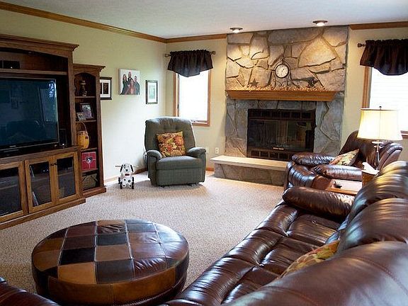Pull the moving truck right up and start carrying your things in! This recently updated home has a ton of great features! Three nice size living spaces including a front living room, family room with woodburning stone fireplace and open rec room with new carpeting. Eat-in oak kitchen with new countertops and adjoining dining room. Huge master suite with cathedral ceilings, a large walk-in closet and bathroom with skylights. Three additional, nice sized bedrooms with cathedral ceilings. Great up-to-date colors and hardware. Large 36' x 12' deck. Fresh landscaping. So many updates including a new furnace and central air in 2012!