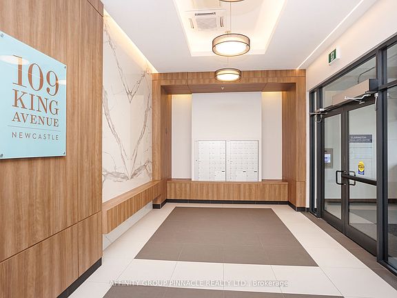 Experience Modern Comfort & Small-Town Charm in the Heart of Newcastle. Welcome to 109 King Ave E, a beautifully maintained 2-bed, 2-bath condo offering over 1,400 sqft of bright, open living space. Step into a large welcoming entryway that opens to an open-concept kitchen and living area, featuring 9 1/2 ft. ceilings, expansive windows, and a charming Juliet balcony. The layout provides a seamless flow for everyday living and entertaining, while exceptional sound separation ensures a peaceful atmosphere. Enjoy stunning Western views with gorgeous sunsets & seasonal views of Lake Ontario to the south during winter and spring. The primary bedroom offers generous space with double walk in closet and 3pc ensuite, complemented by a large second bedroom and a 4pc bathroom for added convenience. Ideally situated, you're just steps from grocery stores, shopping, parks, the library, & local restaurants, with the hockey arena, rec centre & top-rated schools nearby. Commuters will love the easy access to on-call bus service, morning & evening buses, GO bus stops, & Highway 401. Healthcare is within easy reach, with a hospital & walk-in clinic just 10min away. This building offers outstanding amenities, including a rooftop patio with a shared BBQ, a resident library, & a heated ramp leading to the underground garage for effortless winter living. The unit includes an indoor parking space, in-unit storage locker and a laundry room. Utilities are individually metered for water, gas, & electricity, with independent heating and cooling controls. Additional perks include on-site physiotherapy and chiropractic services for ultimate convenience. Recent updates: 2021- kitchen island drawers, upgraded faucets, new washer/dryer, dishwasher and toilets; 2023 - New lighting throughout ; 2024 - window upgrades & fresh paint. Discover condo living in a quiet, welcoming community - ideal for professionals, investors, families, retirees, or anyone seeking comfort & convenience in Newcastle.