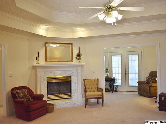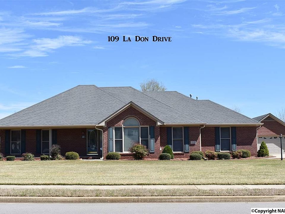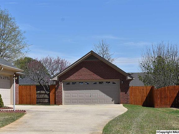 Darylewood Estates is a wonderful "county" neighborhood with large lots, views and natural gas! This home is full brick; awesome yard w fenced back; two separate garages(4 car total w workshop area) and great storage space! The Great room has trey ceiling, crown, and a gas log fireplace. Other rooms include: Formal Dining; breakfast room, sun room or study and 3 Bedrooms. Split Bedroom plan! All rooms are large esp. Master suite with roomy glamour bath. Seller leaving all appliances including washer/dryer. Move-in ready just have to paint your colors as is a Neutral decor now. Timeless design!! Across from schools; 20 minutes to Redstone Arsenal. 1 mile to Walmart & Publix etc!