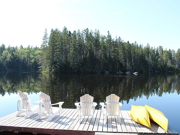PRIVATE LAKE FRONT - Double lot bordered state forest preserve, over 100 feet of direct shoreline on non-motorized Lake Snow, as well as deeded access to a nearby sandy beach. 4 bdrm, 2 baths, vaulted ceilings, wood stove, lake and mtn views from deck, dock and most furnishings are included. $10,000 credit at closing for a new roof if it is not replaced prior to closing.