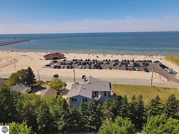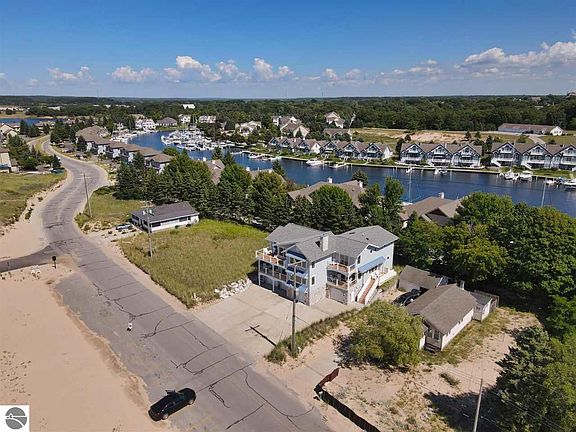 The ULTIMATE Beach House(s) all in one, overlooking LAKE MICHIGAN. 7 BR's, 6 full BA's, 2 half BA's, 2 real-stone gas fireplaces, 2 kitchens, 2 laundry rms, pecan flrs, decking galore and a 4-car gar to use for game rms or vehicles. There is NOTHING LIKE THIS available along the LAKE MICH shoreline! Exceptional rental income potential! Pella windows/doors. Back grilling decks. A/C. All kinds of storage for your personal and/or rental needs. Carefree living, with no concerns about Lake MI water levels and no maintenance of the beach. The City of Manistee takes care of this incredibly wide, sandy beach. No HOA fees here either. And there are boat slips available steps away for less than $20,000 that offer you access to 2 pools, 2 hot tubs and a fitness center, if interested.