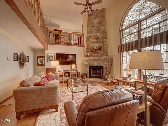 TURN KEY Lake Wallenpaupack Lakefront - Level Lake Frontage & No Community! Enjoy lake views from nearly every room! This cozy home offers 4 bedrooms, 2 full baths plus 1 half bath, wide open and spacious floor plan, sunroom, overside kitchen and dining room area, floor to ceiling stone fireplace in living room and more! Incredible main level master suite w/ attached bath suite and beautiful lake views, 3 additional bedrooms upstairs plus a large loft/office area! Full basement, spacious lakeside deck, level to water's edge and so much more! This home has it all & is located about 5-7 minutes from town. Full house generator included! Fully furnished!