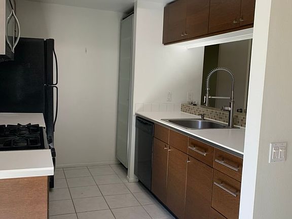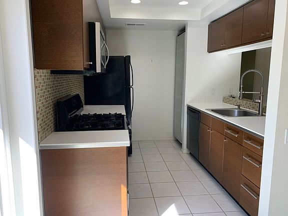 This two-bedroom, single-level condo has an open floor plan with a large living room and galley-style kitchen with a window that opens to the living space. Each spacious suite-style room is situated on either side of the unit and features a large walk-in closet and a shower/tub bathroom with separate vanity. In-unit stackable washer and dryer and a back patio with serene greenery. Centrally located, this unit is close to shopping, dining, and entertainment. Gated community with shared pool and spa. Pet friendly for small dogs and cats only. Only one pet allowed per HOA.