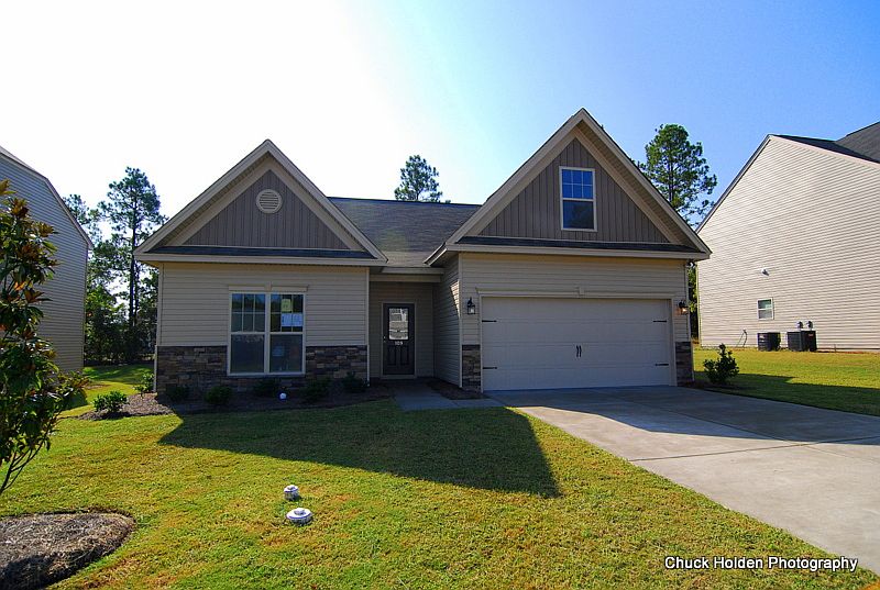 The 'Santee C' Ranch eBuilt open floor plan.High ceilings, in Family Room.42' cabinets w/crown molding, pulled & staggered Kitchen cabinets. Granite counters throughout.Adult height vanities w/double undermount sinks,Large Garden Tub/Separate Shower in Master Bath. Gas FP w/ TV Niche. Hardwoods in main entry foyer.Additional recessed lighting pkg & finished bonus room over garage. eBuilt energy pkg, including tankless gas water heater,14 SEER HVAC, radiant barrier sheathing, 3rd party HERS tested and(Certified High Performance(CHIPS)Bronze level energy rated. Fully Sodded and full irrigation.
