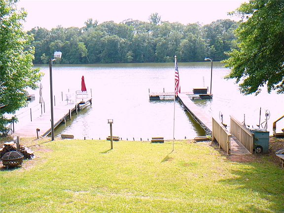 Flat lot. No problem getting to the water and dock which is about 40' from covered porch. Very well kept with beautiful lawn. 3 Bedrooms, 2 Full Bathrooms. Master has garden tub, separate shower and walk-in closet. Stove, refrig, dishwasher plus washer and dryer. There are 2 docks, one floating, one stationary plus your own boat ramp.