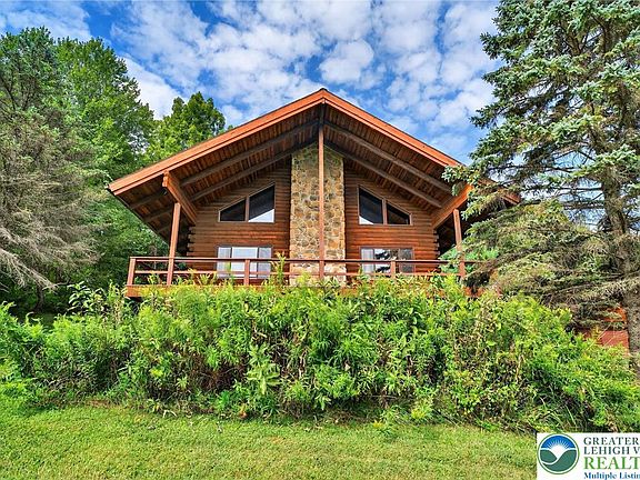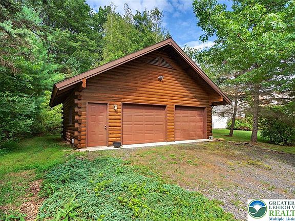 Charming custom log home set on a 1-acre corner lot, surrounded by trees for privacy and a true country feel. Step inside to vaulted ceilings, wood walls, and a cozy fireplace that create the perfect mountain-home atmosphere. The open first floor is filled with natural light and offers a welcoming living room, dining area, kitchen, bedroom, and full bath. Upstairs, a spacious loft serves as a second bedroom with its own full bath. The finished lower level adds a comfortable family room and laundry area. Outdoor living shines with a covered wraparound deck and a covered patio, ideal for relaxing or entertaining year-round. A detached oversized 2-car garage provides plenty of parking and storage. All this just minutes from Routes 80 & 78 and located in Pleasant Valley School District—offering the best of rustic charm and modern convenience.