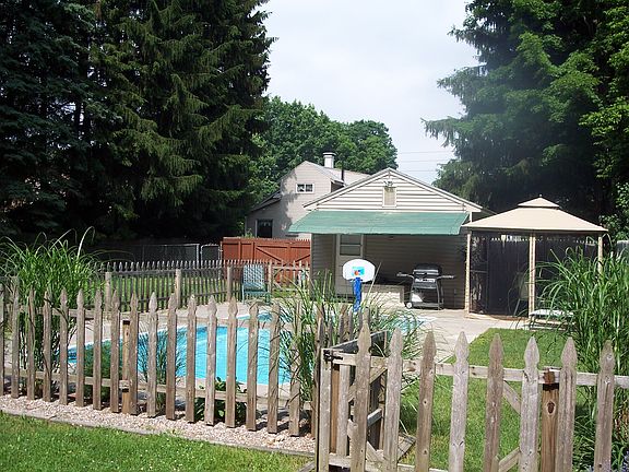 This well maintained charming home offers much more than a convenient location. Schedule a showing today, this home will not show off its features from a drive by. The kitchen offers all appliances, ceramic tile, plenty of cabinets and a dining nook with an oversized window. Large living room offers gleaming wood floors, and beautiful oversized trim and baseboards. Off of the living room is a three season porch, a fantastic sitting area. Upstairs is the master bedroom and full bath with new carpeting. The bedroom is a large tranquil area, overflowing with closets. The backyard offers an in-ground pool and BBQ area. The property is completely fenced, overlooking woods. All you have to do is unpack, this home is move in ready.