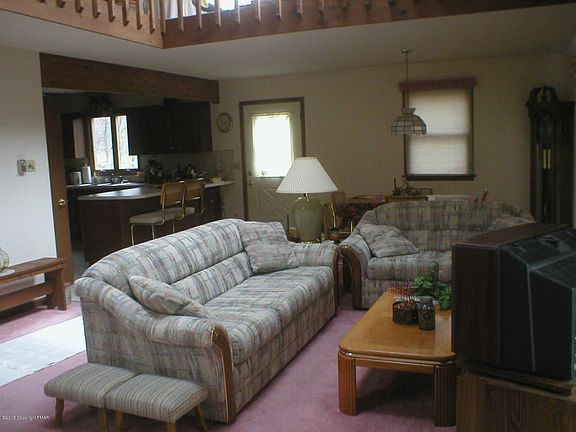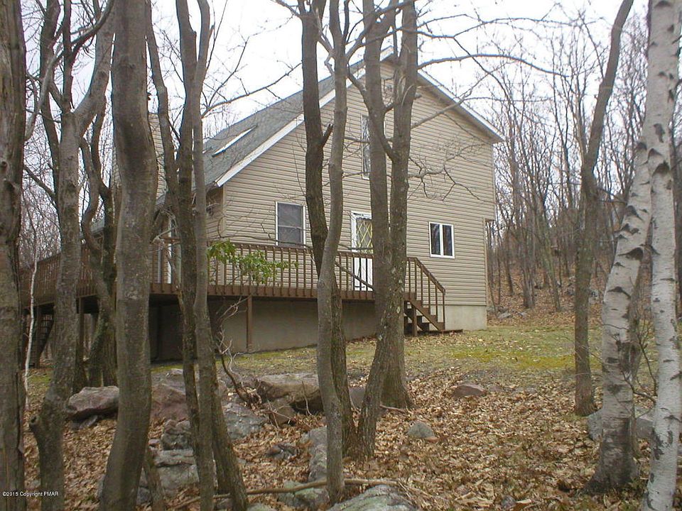 GREAT MOUNTAIN LIVING in this 3 BR 2 BATH CONTEMPORARY w/FULL BASEMENT on CORNER WOODED ACRE with LOTS OF PRIVACY. HUGE WRAPAROUND DECK offers lots of area for SUMMER FUN and SEASONAL VIEW. NO GRASS TO CUT HERE with the NATURAL WOODSY SETTING where the DEER and the WILDLIFE PLAY!! SPACIOUS OPEN LIVING AREA w/LARGE KITCHEN w/BAR, DINING AREA, LIVING AREA w/BRICK FIRPLACE!! MASTER BEDRM/BATH on FIRST FLOOR!! Located in an AMENITY FILLED COMMUNITY w/24/7 GUARD at BOTH GATES!! Enjoy the 5 LAKES, 2 POOLS, TENNIS COURTS, PLAYGROUND, and CLUBHOUSE. Step outside the community for SKIING, WHITEWATER RAFTING, SKIRMISH, WATERPARKS, POCONO RACEWAY, 2 STATE PARKS, CASINOS, SHOPPING....all within 10-30 MIN. HOW GREAT IS THAT!! MAKE YOUR APPT NOW!!