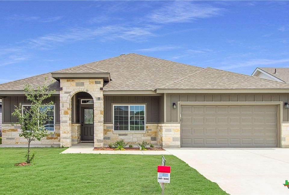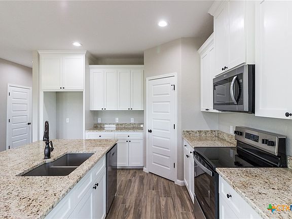 MOVE-IN READY new construction home! Custom 1952 SqFt. home conveniently located near New Braunfels in Marion Park (Marion, TX). Level 0.172 acre lot in the quiet countryside within Marion ISD. Features NO HOA and high-speed fiber internet! Spacious floor plan with 4 bedrooms 3 full baths including a guest/mother-in-law suite with a private full bath, large walk-in closet and kitchenette (includes microwave and mini fridge). Large master suite with vaulted ceiling, spacious walk-in closet, garden tub, large corner walk-in tile shower with dual shower heads (and rain shower head) and a double vanity. Vaulted great room with 9' ceilings throughout the home. Kitchen with oversized island, custom white painted wood cabinets, walk-in pantry, and dining area. Wood-look tile flooring in wet areas, living room, and master bedroom with carpet in the bedrooms and closets. This home includes upgraded features- worth about $10,000-$15,000 value! Granite countertops throughout. Exterior of home has stone 42" tall across the front of the home and hardi-plank batten board. Includes full front, side and back yard landscaping. Covered back porch perfect for entertaining with TX summer BBQs! Ask us about this home/other new homes under construction- or build on an available lot! Experience Affordable Luxury with Olin Johnson Homes- a trusted custom home builder with over 25 years of experience.