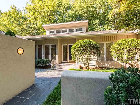 Beautiful Modernist/Contemporary. One level living in The Oaks, on a large lot of 1+ acre. Beautiful kitchen with gorgeous counter tops. Light and bright, airy with vaulted ceilings, landscaped yard and superlative location. Chapel Hill School District. Chapel Hill Country Club neighborhood. Cul de Sac road with very little traffic, this home is waiting for you.