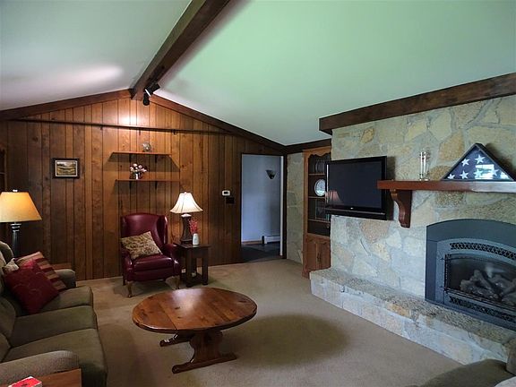 Meticulously maintained inside and out. Formal front entry with slate flooring, french doors lead to office, vaulted ceilings, eat in newer kitchen with cherry cabinetry, snack bar area plus formal dining, Lannon stone fireplace in living room with built in bookcases, gracious master bedroom suite, oak paneled doors and first floor laundry. Finished lower level is great for entertaining. Large family room, plus a 18x23 rec room and 10x12 walk in closet. The yard has a privacy fence and beautiful perennial gardens. All appliances, freezer, dog pen, 42" flat screen TV and ping pong table included. The hand pump on fountain is not included. Abundance of closets.