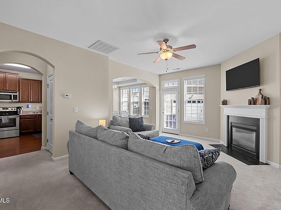 Welcome to 109 Mainline Station Drive, a beautifully maintained 3-bedroom, 2.5-bath home with 1,867 sq ft in the sought-after Keystone Crossing community. Perfectly located just minutes from RTP, RDU, major highways, shopping, and dining! Step onto the covered front porch and into a bright welcoming foyer, featuring a front entry door with electronic lock, sidelight, and transom. The open kitchen features a breakfast bar, stained flat-panel cabinetry with brushed nickel pulls, pantry, and SS appliances, including an electric Whirlpool smooth-top range, built-in GE microwave, dishwasher, and GE refrigerator. The spacious family room offers soft carpeting, a ceiling fan, and a gas log fireplace with slate surround and painted mantel, pre-wired for a flat-screen TV above. Arched doorways lead to the dining room, where you'll find a tray ceiling, art niche, a 5-light brushed nickel chandelier, and an abundance of natural light from multiple windows. Upstairs, you'll find 3 generous bedrooms, including the primary suite with a tray ceiling, brushed nickel ceiling fan, and abundant windows. The en-suite bathroom offers a dual vanity, soaking tub, separate shower, water closet, and a large walk-in closet. The laundry room, equipped with a Whirlpool washer and dryer, includes built-in shelving for added convenience. Outside, enjoy a concrete grilling pad in the backyard and take advantage of the community pool. 📍 Don't miss this fantastic opportunity—schedule your tour today!