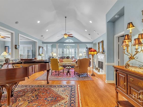 This 4BR/3BA townhome in Westbrook at Savannah Quarters offers 3,239 square feet of well-designed living space with two bedrooms on the main level and two upstairs. The kitchen features rich brown cabinetry, pantry storage, premium appliances, and a breakfast bar that opens to a gracious den. The generous living room boasts a cathedral ceiling, gas fireplace, mantle, and built-in bookshelves, complemented by a formal dining room. The main-level owner’s suite includes a spacious bath with double vanities and a custom walk-in closet. A second bedroom or office, full bath, and laundry are also conveniently located on the main floor. Upstairs, two large bedrooms share a Jack-and-Jill bath. A screened porch overlooks the fenced yard and wooded backdrop for added privacy. Upgrades include custom wood shutters, crown molding with bullnosed corners, chair rail, and a new roof.