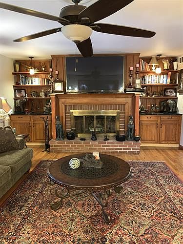 - RoomLivingRoomFeatures: Floor - Wood, Fireplace - Woodburning, Built-Ins