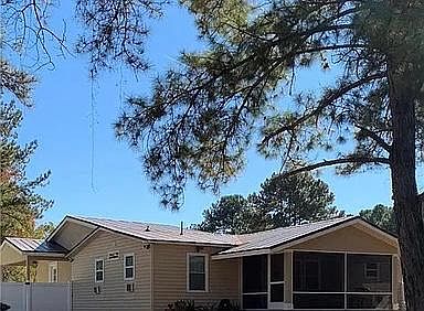 Totally updated, Manufactured home with a metal roof, featuring Great Room, decorator fireplace (non-functional), dining area with side-bar and kitchen with Stove & Refrigerator. Vinyl plank and ceramic tile flooring throughout. 2 baths featuring beautiful walk-in showers. Split A/C/ Heat system plus window a/c units . 3 bedrooms with the master having its own private bath. Huge laundry/office/game room includes washer & dryer. Covered patio. Screened front porch includes outdoor furniture. Privacy, vinyl fenced yard with extra storage building. Owner pays all utilities.