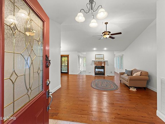 ''Welcome Home'' Welcome to this 1869 sq ft, split bedroom floor plan home that perfectly combines style and functionality. As you step inside, you are greeted by beautiful hardwood flooring that flows throughout the entire space, enhancing the home's warmth and charm. The living area boasts a vaulted ceiling, creating an airy atmosphere, while a two-way fireplace serves as a unique focal point that can be enjoyed from both the living area and the adjacent sunroom.
