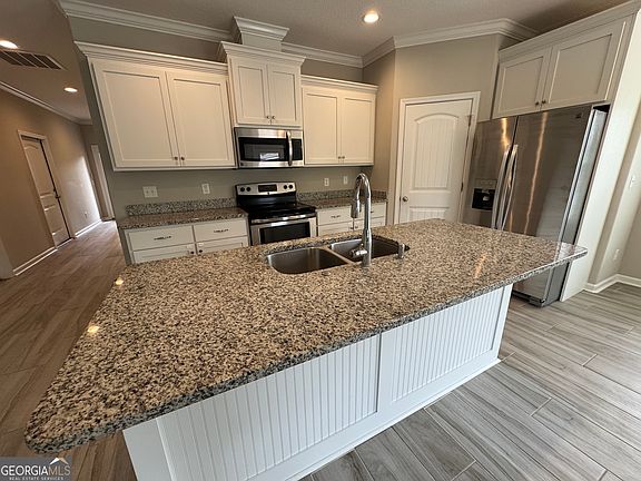 Open concept living space with island kitchen, granite countertops throughout, stainless appliances, crown molding & wood look tile floor in the main living area! The master suite boast a tile shower, double vanity and large walk-in closet. Pets are negotiable. Mowing and Flowerbed maintenance included. Lease term is for 12 months. Minimum monthly income requirement is $5,250. No Cats, small dogs considered. Anyone over the age of 18 that will be residing in the home must fill out an application. Application fee is $60 and is non refundable. Copyright Georgia MLS. All rights reserved. Information is deemed reliable but not guaranteed.