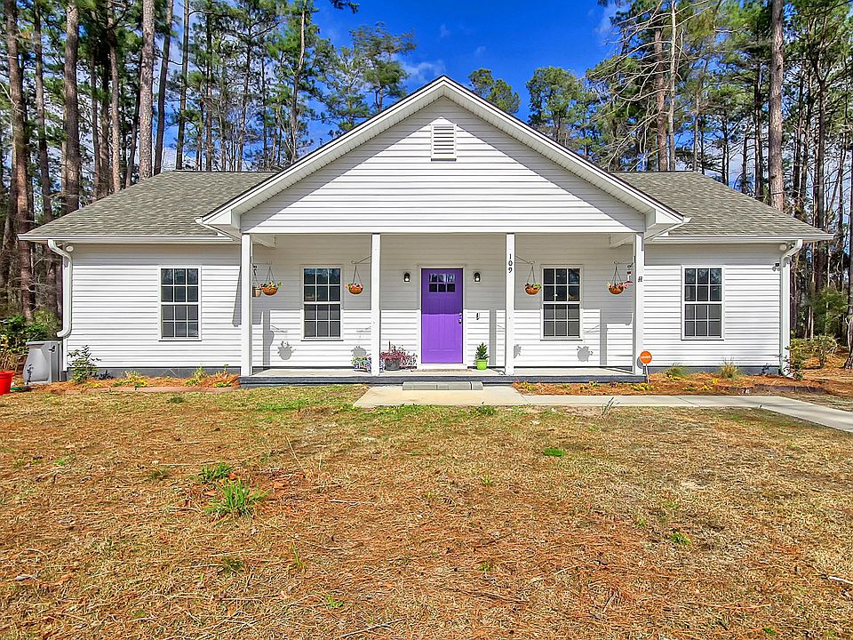 Looking for a little bit of country, minutes from everything? You found it! 5 minutes to the Nexton Parkway / I-26 Interchange and 5 minutes to restaurants and shopping in downtown Summerville, 109 Mary Ellie Dr is your oasis in the middle of it all. Two years young, this easy living one story ranch has a very generous open concept kitchen/living/dining floorpan, a huge island with room for four stools, and tons of cabinet space. A screened-in porch off the back of the house welcomes in the peace and quiet of the nearly half acre wooded backyard, surrounded by pines and magnolias. Three bedrooms and two full baths complete the living areas, with the master suite featuring an extra-wide barn door entrance to the master bath, twin sinks, walk-in shower, and his and hers closets.This home has been lovingly cared for with the added benefits of a Leaf Guard system on all of the gutters and a french drain with pump to handle any extra rainfall in the backyard. All appliances, including fridge, washer and dryer, convey with the property. For the price of a townhome, you can have your own home, without HOA or regime fees! All of this, AND Dorchester II schools...you can't beat the peace and privacy that this home offers, while still being so close to shopping, schools and restaurants. Yes, you can enjoy nature and all that Summerville has to offer, all at the same time!