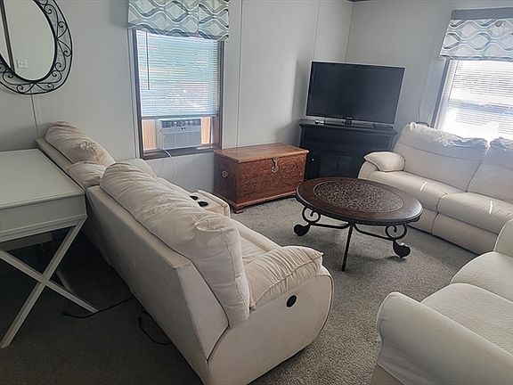 Welcome to this beautiful and affordable 2-bedroom, 1-bath mobile home, built in 2023 with modern finishes throughout. The outside features a shed for extra storage. The kitchen features modern dark cabinetry and ample counter space. Offers 2 bedrooms and 1 full bath designed with contemporary fixtures. This home is move-in ready and located in a well-maintained all-age community with affordable HOA fees, making it an excellent option for homeowners seeking low-maintenance living without sacrificing comfort or quality. Don't miss this opportunity to own a nearly brand-new home. $100 refundable member application fee. First open house Tuesday 7/8/25 5-7pm