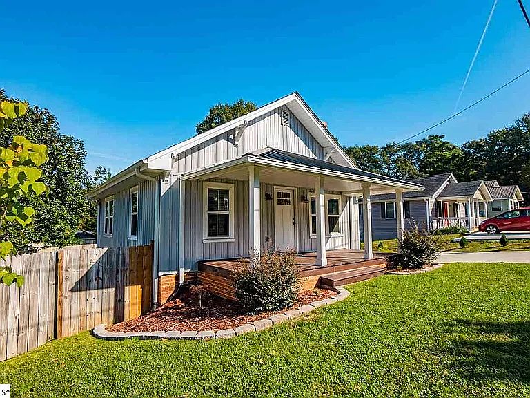 Application Required! Renter is responsible for utilities, internet, yard maintenance. No smoking allowed. No animals allowed. Welcome home to this adorable bungalow just blocks from downtown Easley! Perfectly situated and lovingly updated, this home is move in ready. The quiet street will charm you in and this beauty will keep you there! As you pull up you will be drawn to the sprawling covered front porch, just waiting for a few rocking chairs. You will love sitting here in the evenings to unwind after work. Step inside to find lovely low maintenance vinyl flooring in the vast open living/dining and kitchen spaces. An easy fireplace, with remote control, will set you up for cozy nights watching movies. Plenty of space for your farmhouse dining table set and buffet set the dining room area apart. Heading into the renovated kitchen, you will be ready to get the holiday meals prepped for family and friends. Beautiful granite counters, white cabinets complimented by subway tile and stainless steel appliances, which all remain, all reflect the beautiful natural light from the ample new windows. Heading into the bathroom, you will find beautiful tile floors and shower, gorgeous dual sinks and lovely mirrors. The stackable stainless steel washer and dryer, placed neatly here, will stay too. Two ample sized bedrooms finish out your indoor escape. Now to the backyard! Fully fenced and boasting a large magnolia tree and numerous berry bushes, you have plenty of space for all your outdoor entertaining. The firepit is the perfect place to lounge while watching the stars. A large 8x12 storage building is waiting for all your lawn equipment or use it as a mancave or she-shed. Don't forget the very spacious walk in crawlspace, tall enough to use as an extended outdoor entertaining area if the weather is not cooperating. Some finishing touches here can turn this space into anything - home bar area or workshop! This home is just waiting for it's new owner, so come on over and check it out. Renter is responsible for utilities, internet, yard maintenance. No smoking allowed. No animals allowed.