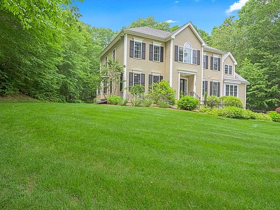 Elegance and charm are displayed inside and out in this custom-built Colonial just off of Fiske Hill! Featuring 4 bedrooms and 2.5 baths, the first floor offers versatility with an office, dining room, and a secondary living area. The home also boasts a stunning kitchen with granite countertops and cherry cabinets, and a large living room with a cozy fireplace. Upstairs you'll find a spacious primary suite with a beautifully remodeled en-suite, his and her walk-in closets, plus three other ample-sized bedrooms and a full bath. Set on a private 1.32-acre lot with professional landscaping, a flat backyard, new composite deck, bluestone walkway, Techno-Bloc patio with built-in fireplace, Gutter Helmet system, whole house generator, and a large storage shed out back. Includes a 2-car garage. Just minutes to shopping, restaurants, and highway access!