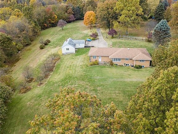 Driving down the lighted concrete drive you can feel the weight of the day dissipate...this meticulous brick ranch home & its surrounding 9.72 acres bring instant serenity. Come on in & relax in the 4 season porch enjoying the amazing view. The main floor is all nice hardwood floors (some under carpet). The livingroom dons a woodburning fireplace & a unique built in curio. The beds/bath on the main floor are large & have an abundance of storage. The eat-in kitchen is the perfect size for entertaining. The downstairs living area can be an in-law suite or apartment as it has a separate entrance in addition to being able to access from inside. It has a bedroom, living area w/fireplace, kitchenette, 2 pantries and another full bath. Stay warm in winter months while still being able to work in your work shop with the wood burning stove the upper part of the enormous work shop is all for MORE storage! Enjoy harvesting apple & pear trees & blueberry bushes right in your back yard!!