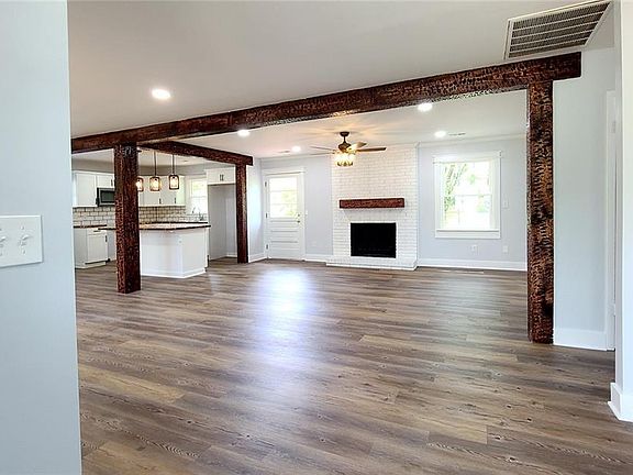 Back on the Market! Take a look at this; beautifully renovated brick house on a cul-de-sac, near downtown King, easy access to highways yet secluded and rural location. The front porch is brick-paved with gardening area. The front door opens into the living room; large area of open-space concept to the kitchen and den with dining room space. The kitchen area has a rustic finish matched with modern style; large island with overhang breakfast area, stylish lights, tiled backsplash and butcher-block countertops. The den offers a brick fireplace, ceiling fan, recessed lights and a door to the back yard. The hall bath offers a bathtub with tiled shower walls, easy access from bedrooms or living area. Laminate flooring all throughout the house for easy upkeep. The laundry room, adjacent to the kitchen, has extra storage space and is accessible through the carport. Nice big backyard with brick-paved patio, mature trees with plenty of shade and partially fenced sides. See Agent Only Remarks.