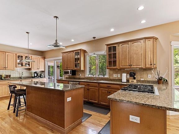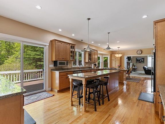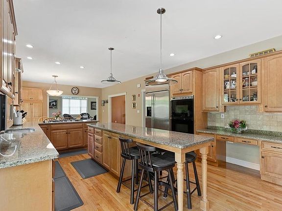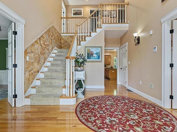 Entering between the stone pillars and tucked amongst mature trees, sits this beautiful custom colonial on 3.5+ acres. At over 5,000 sqft. of living space, this 1999, 4-Bedroom, 2 ½-Bath residence is sure to please. Built with entertaining in mind, you will find a wonderful chef's kitchen, formal living room with soaring ceilings and fireplace, billiard room w/fireplace, year-round sunroom, 700+ bottle wine cellar, lower level media/game room and much more. Fantastic improvements, and too many to list here (completed within the last 6 years) including; Master Bedroom w/fireplace and same level laundry room; complete remodel of Master Bathroom with heated floors, fireplace, huge custom tiled shower and classic deep claw foot tub; complete remodel of Guest Bathroom, sauna and more. Outside improvements too; tennis court, basketball area, generator, fencing, and RV parking.