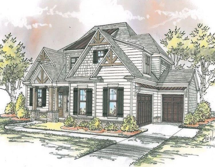 NEW HOME - UNDER CONSTRUCTION! Welcome Home to The Evans - Open Concept Living in a Gated Community Discover the epitome of modern living in The Evans, a captivating 4-bedroom home with 2 bedrooms on the main floor. This craftsman-style haven welcomes you with its adorable exterior adorned with beautiful architectural details and a distinctive metal porch roof. Step inside to an open-concept floor plan where the vaulted family room takes center stage, complemented by a loft and a versatile large attic—perfect for a bonus room or ample storage. Enjoy the warmth of a wood-burning fireplace nestled within built-in bookcases, creating a cozy focal point in the family room. The heart of the home is a spacious kitchen featuring a huge island, ensuring you remain at the center of the activity with views of the family room and a large window wall that bathes the space in natural light. Retreat to the main-floor master suite, where the master bathroom boasts a large tile shower, and a vast walk-in closet awaits. Beautiful hardwood floors grace the main level, adding elegance to every step. Upstairs, two nicely sized secondary bedrooms each come with their private bathrooms, offering comfort and convenience. A 3-car side-entry garage provides ample parking and storage. Anticipate the joys of living in this gated community, just a walk away from downtown Ball Ground, tennis courts, baseball fields, Calvin Farmer Park, hiking trails, Ball Ground Botanical Garden, and local shopping and dining. Your new home, scheduled for completion in March. Home comes with a 1-year builder warranty. Stock photos for reference. Your modern, comfortable, and connected lifestyle begins here.