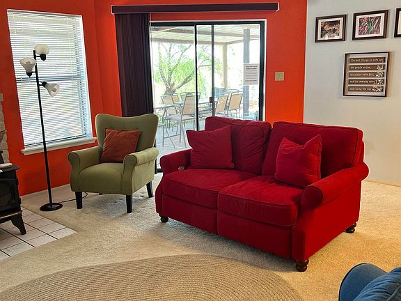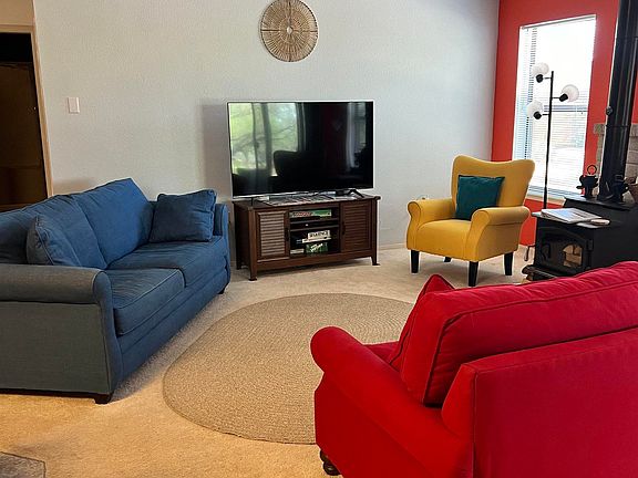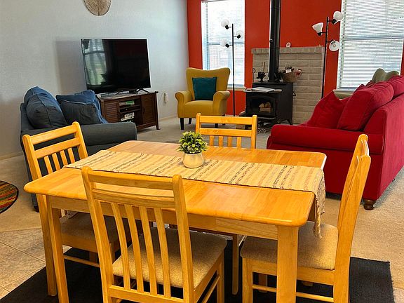 This fabulous 2-bedroom, 2-bath home is full of character and ready to be enjoyed from day one. Set on a large lot with eye-catching desert landscaping, the property offers space, comfort, and convenience just minutes from Elephant Butte Lake State Park. Inside, the home is fully furnished and thoughtfully styled with vibrant colors that create a warm, welcoming atmosphere. Central air conditioning and heating provide year-round comfort, while a wood-burning stove adds an inviting focal point for cooler evenings. The layout flows easily for everyday living or hosting guests. Step outside to a spacious covered back porch—perfect for relaxing, dining, or enjoying the surrounding views. Additional features include a 2-car garage, an attached storage room for gear or tools, and plenty of room on the lot to enjoy the outdoors. Whether you’re looking for a full-time residence or a weekend retreat near the lake, this home offers a wonderful blend of comfort, style, and location.