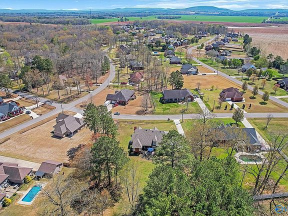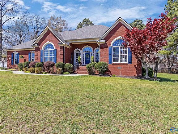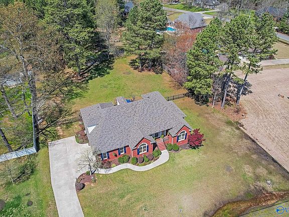 This amazing full brick custom built home features 4 beds on main level with large master bedroom and en-suite bath for total of 3 1/2 baths. Large walk-in closet. Hardwood/LVP floors throughout downstairs. Entry foyer and formal dining room. Extensive crown molding. Custom trims. Kitchen with granite counter tops opens to sunny breakfast room.Gas fireplace. Upstairs beautiful bonus room with full bath. Property sits on flat 3/4 acre. Irrigation system and two car attached side entry garage. Patio with wood deck to enjoy peaceful location. This home is a beautiful jewel 20 mins away from Huntsville, Redstone Arsenal and Cummings Research Park.