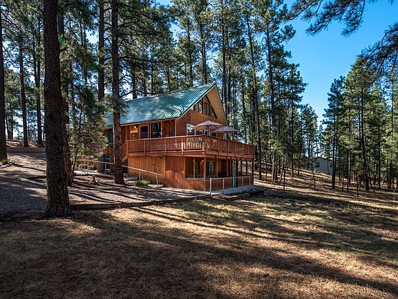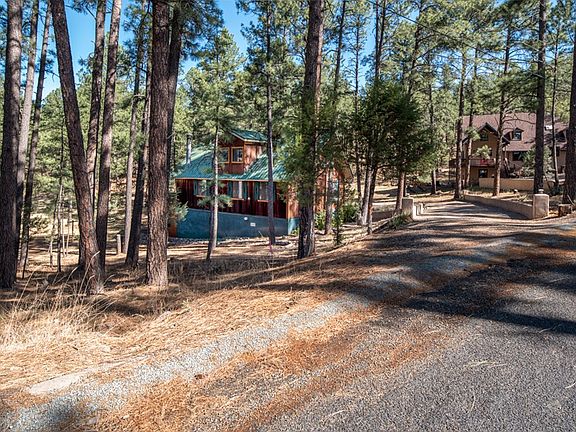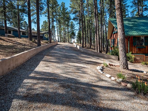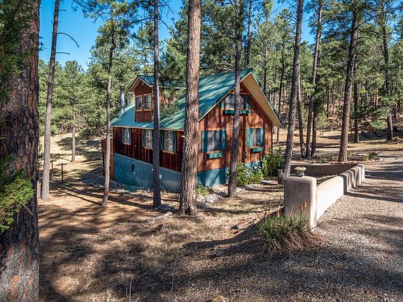 Super cute 3 bedroom 3 bath cabin in the heart of Ruidoso and adjoins National Forest. Beautiful location in a park-like setting. Main level has 2 bedrooms, kitchen, dining and living area with fireplace. Upstairs is a large bedroom with a seating area or more sleeping. Below is a super flex-space for games, sleeping, office, etc. Family friendly home with plenty of parking. City water, sewer, natural gas, cable, etc. Screened in porch for wildlife viewing. Sells fully furnished. Call to see this one today!