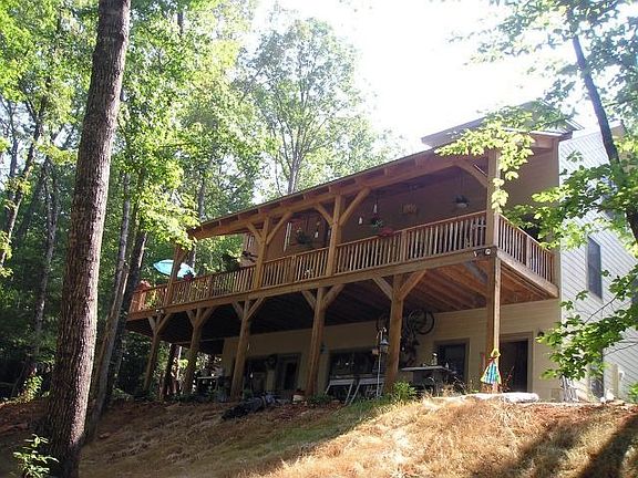 Located in northwestern South Carolina only 8 miles from the North Carolina border, this home was custom built in 2005. Supported by exposed white pine timbers and tongue and groove vaulted ceilings there's a rustic feel but with modern state of the art features. Inspected and certified as both an "Energy Star" and "Earth Craft" home, features inlude double pane, gas-filled windows, R-40 ceiling and R-28 wall insulation, and a 17 SEER Trane heating and A/C with a 7 1/2 year parts and labor warranty remaining. The exposed post and beam construction is highlighted by sheetrock interior walls that give greater flexibility in decorating. Heart pine, random width flooring covers the 14' x 32' great room, hall and large Master BR. Yellow pine flooring is in the 18' x 14' open loft overlooking the great room, the large open kitchen (with custom heart pine cabinets and Corian counter tops), and the upstairs bedroom and bath. The Master bath has cedar flooring to compliment the iron tub and separate shower. The lower level bedroom, bath, 12' x 14' rec room, and laundry are floored with Armstrong laminate. Approximately 700 square feet of unfinished basement has storage bins and shelves for crafts, etc. The exterior of the home is designed to enjoy the hardwoods, mountain laurel, and owner landscaping. Siding is Hardi-Plank for wear and safety. On the side of the house is a 12' x 44' open deck with cedar railing. At the rear of the main level is a 10' x 42' covered porch with cypress post and beam construction. This is the place to enjoy the sunsets over the 80 acre lake and the mountains of North Carolina. In addition there is a 10' x 52' covered porch on the lower level and a small entry porch in front . City water, county maintained street, neighbors that are close but barely visible make this a great place for a get-away from the city and even better as a primary residence. The community around the lake has an assoc,iation to maintain the lake, boat-launch and picnic area and to set limited rules to assure a wholesome environment for all. Dues are $100/year which is the deal of a lifetime. The following are reasonable travel times to the places indicated: Atlanta I-85/I-285 2 hours, Greenville, SC 1 50 min., Clemson, SC 25-30 minutes Cashiers, NC 30 min, Ashville, NC 1 hr, 15 min.. Come and see this unique beauty, priced with the housing glut in mind! Additional property info: http://www.forsalebyowner.com/listing/3-bed-Single-Family-home-for-sale-by-owner-109-Mountain-Top-Drive/21804908?provider_id=28079