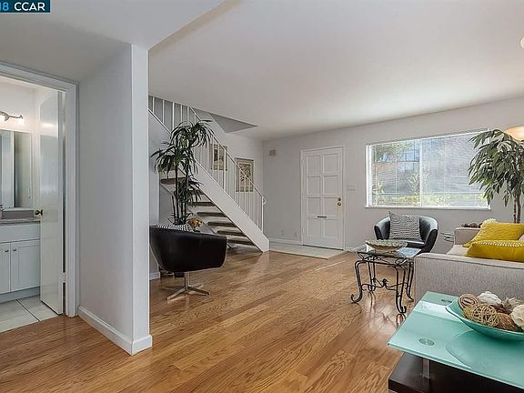 Light, bright townhouse-style condominium. Updates include kitchen, baths, flooring and HVAC. Quartz counters in kitchen with tiled backsplash. Quartz counters in baths, tiled floors and tiled tub/shower surround. Engineered wood floors in gracious living room. Half-bath with hallway separation. Guest closet. Inside laundry with room to move--washer and dryer included! Generous yard space with storage; carport just outside gate; two assigned spaces, one covered. Close to hospital, shopping, cinema and freeway access. Serene setting. Open Saturday and Sunday, April 7 & April 8, from 1-4.