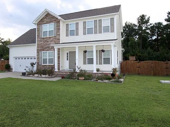 This beautiful three bedroom, two and a half bath home has so much to offer. Home has hardwood floors in the kitchen dining and entry way and new carpet in the living room. The kitchen boasts Corian counter tops. There is a master on main including a jetted tub and double shower and three nicely sized bedrooms upstairs, in addition to a separate office,with plenty of space to live in and enjoy. For your four legged friends, there are automatic doggy doors to exit to a yard separate than the general backyard. The back screened in porch is a wonderful feature to spend evenings out back in comfort. There's an amazing patio with a fire pit that is great for entertaining and a paved path to the front yard. In addition to a backyard play set, there's a neighborhood park in view from the front porch! This home is part of a small, quiet neighborhood with a front pond. The alarm system features window and door sensors. The door features both key and keyless, programable, entry options that you can sync with your alarm service (for addition alarm service fee). Five minutes to the back gate of MCAS New River. Call today for your personal showing.