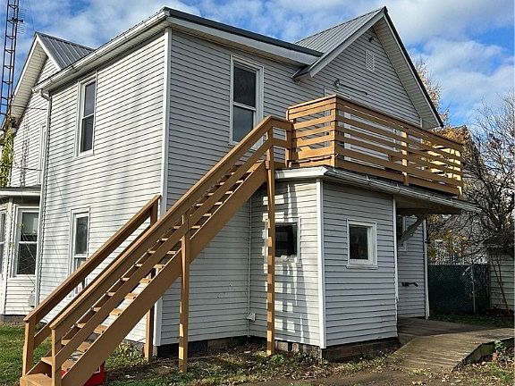 Discover this well maintained duplex in Minerva, offering two distinct units. Situated in a desirable neighborhood, this property provides easy access to local parks, local schools, and bustling businesses, making it an ideal investment or owner-occupied opportunity. The upstairs unit features three generously sized bedrooms. It includes one full bathroom and an expansive living area. The eat-in kitchen offers ample counter space and cabinetry. An enclosed sunroom provides additional living space and an alternative egress to the first floor. Recent updates include a new hot water tank installed in 2024, a metal roof replaced in 2023, and updated windows that enhance energy efficiency. Parking is available behind the garage or on the street.