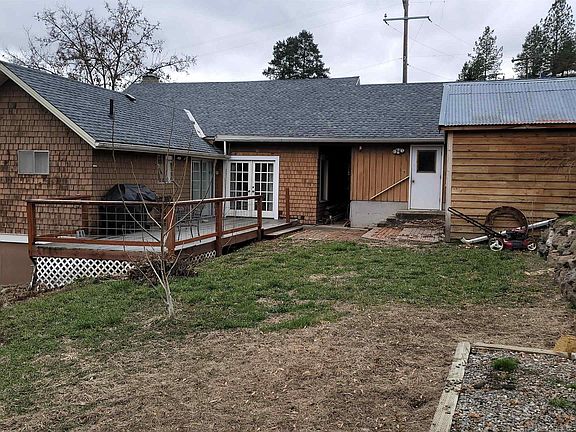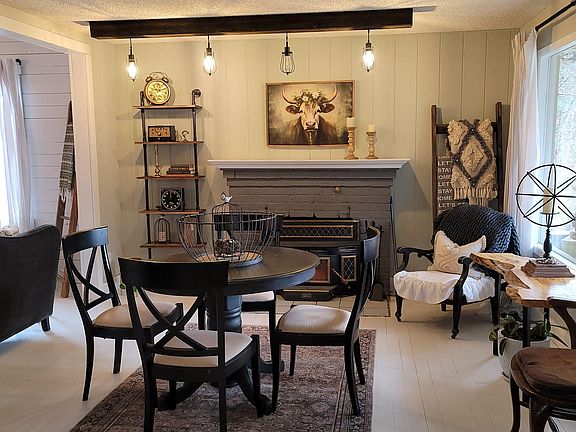 Step inside this inviting, unique cottage style home with a blend of farmhouse and vintage shabby chic. The living room radiates warmth with a cozy wood fireplace, white painted hardwood floors, French door, rustic barn doors and popular shiplap walls. The gorgeous updated kitchen features Corian countertops with a seamless farmhouse sink, matte sheen stainless appliances, popular white cabinets and subway tile backsplash. Open staircase with industrial handrail leads to two more beautifully styled rooms and an office area. Corner lot with fenced yard, covered porch, large deck and views of the mountain. This better than HGTV home is waiting for your personal touches.