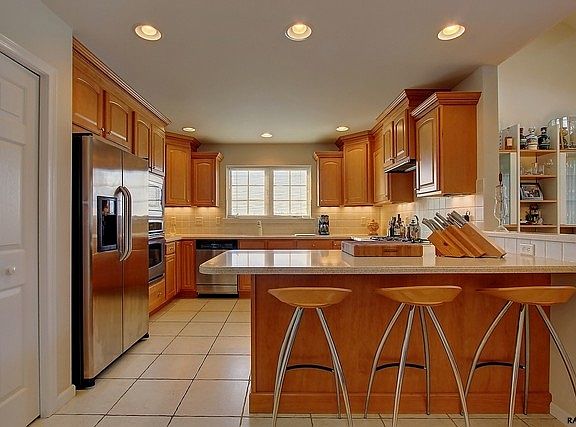 This gently lived in custom stone and vinyl condo boasts all the best amenities: two master suites, a loft, soaring great room ceiling, maple floors throughout, maple staircases, upgraded kitchen with stainless steel GE Profile appliances, fully finished lower level with walkout and private deck/patio in The Fountains. Double wide macadam driveway extends to the two car garage which is 20 x 20 and has two automatic openers. Inside is fully finished and will hold two vehicles with storage areas. Landscaping is very nicely maintained and additional landscaping is along the rear of the property. The maintenance free deck is in excellent condition. There is lots of privacy with no units directly behind or to the left of this one. The view from the deck, patio, and most windows is spectacular and reaches well beyond the township into York County. Foyer: 12 x 6: opens from the covered porch. It includes a half side light, coat closet, and pretty maple hardwood floors. Powder room: 3 x 6: is just off the foyer. It includes ceramic tile flooring, cultured marble countertop over storage vanity, and commode. Den/office/bedroom 3: 11 x 13: opens from the foyer with French doors. There are two large windows overlooking the landscaped front yard, maple hardwood floors, corner closet, and recessed lights. Laundry room: 6 x 5: includes tile flooring, utility tub, and wire shelving. The GE Profile washer and dryer will stay with the home. This room leads to the two car attached garage. Kitchen: 14 x 10: boasts upgraded ceramic tile flooring, Corian countertop with breakfast bar and integrated Corian sink, and upgraded maple cabinetry with roping and additional moldings. A lazy susan sits in one corner while the other corner is deep storage. The stainless steel GE Profile applicants include upgraded four burner gas range, pull out vent hood, side by side refrigerator, microwave oven, dishwasher and built-in wall oven. There is a spectacular view of York County from the kitchen sink. Recessed lights provide task lighting. Dining area: 11 x 14: features continuous maple hardwood floors, an upgraded brushed nickel chandelier and sliders to the maintenance free deck. Living room: 14 x 24: has a vaulted ceiling, large bay window, ceiling fan and recessed lights. A gas fired fireplace is along one wall. Master bedroom suite: 13 x 19: includes wall to wall carpeting, a vaulted ceiling, and large windows overlooking the rear of the property. There is a ceiling fan for circulation. A large walk in closet provides storage (the shelving unit does not convey). Master bathroom: 12 x 9: features ceramic tile flooring, Silestone type double vanity and lots of storage. The soak tub has been rimmed with tile decking. A separate shower and linen closet are adjacent to the commode. This room has recessed lights. Bedroom 2: 18 x 11: has wall to wall carpeting, two casement windows, and a walk in closet. This room has both cable and telephone jacks. The private bath (5 x 9) features a cultured marble vanity, fiberglass tub/shower unit, and commode with ceramic floor. Loft: 20 x 19: is open and overlooks the lower level. Four large windows provide lots of light. The flooring is maple, as are the stairs. A closet is in the corner and there are recessed lights. Family room/exercise area: 24 x 34: is in the finished basement. The room has ceramic tile flooring, cable outlet, and recessed lights. This walk out basement leads from sliders to the patio area. Two windows provide natural light. This space has electric baseboard heat. Kitchenette: features tile flooring, Corian counters and integrated sink, maple cabinets, and small refrigerator. This space is ready for a family get together or company party - what a great playroom too! Half bath includes a pedestal sink and commode over tile flooring. Storage/mechanical area is behind a closed door. It features the 50 gallon gas fired hot water heater, gas fired forced hot air furnace, and additional storage space. A crawl
