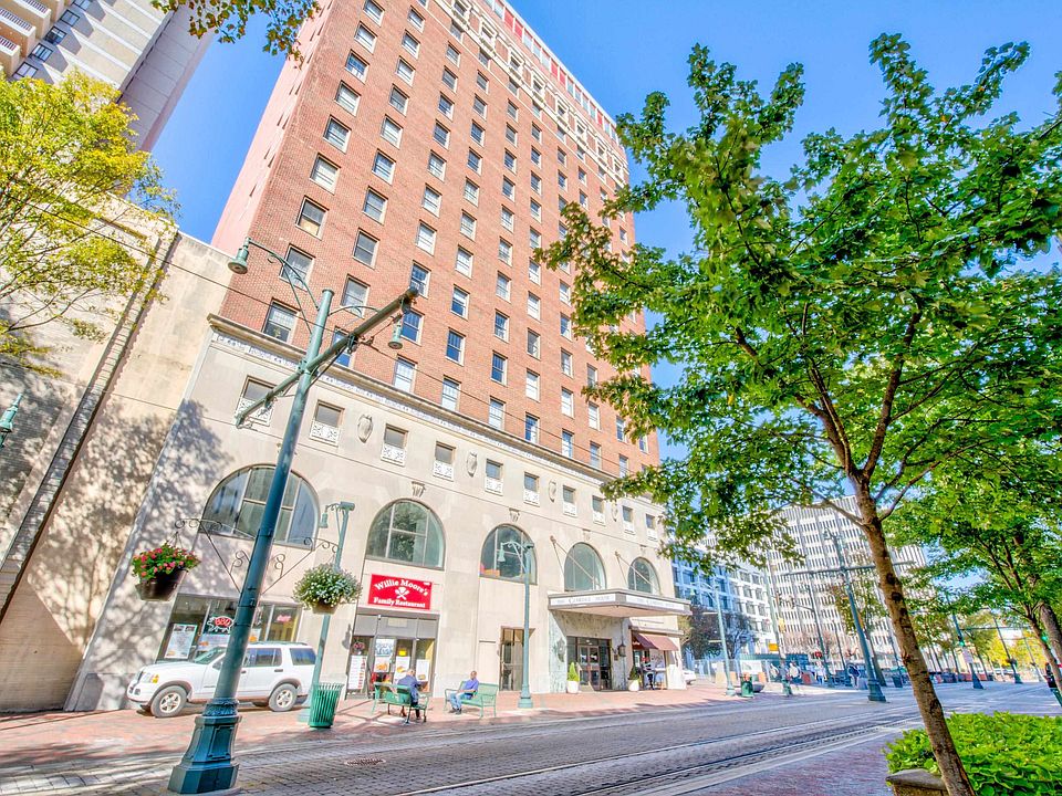 Downtown life at it's finest! Open + Airy 1 bed 1 bath condo overlooking the Fire Museum and Trolley Line! Updated kitchen ~ New windows in living (1) and bedroom! ~ New light fixtures ~ HVAC 3 years old ~ Hardwood floors throughout ~ ~ Tons of closet space! ~ All appliances convey! ~ Very secure building ~ On-site laundry ~ Park in garage for $73/month ~ Amenities include pool and hot tub on 2nd floor ~ Gym ~ Rooftop w/ grilling options ~ Panoramic river views! Owner occupant only--No rentals!