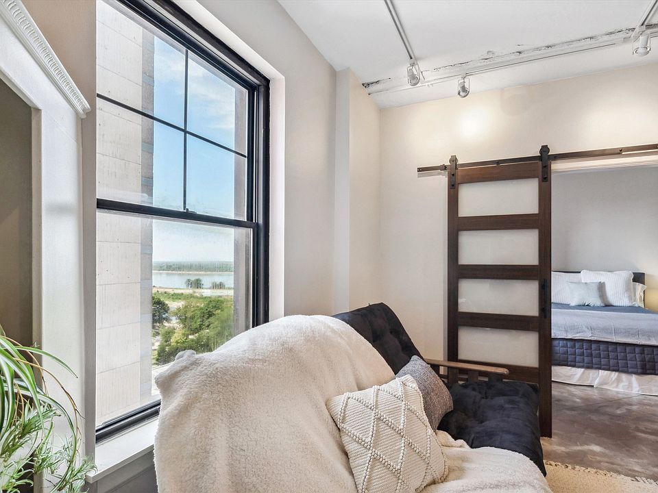 15th floor river views! Enjoy great amenities when you buy this one-bedroom condo in this historic building. Imagine grilling on the rooftop patio with stunning panoramic views. The Claridge House also has a renovated indoor pool, hot tub, and fitness center. Your new city home has high ceilings, scored concrete floors, an updated kitchen, a large renovated bathroom, and a walk-in closet. Same-floor laundry AND monthly parking is available at the Comfort Inn next door. What could be easier?